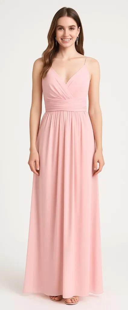 Description: Elegant and timeless blush pink formal gown from David's Bridal, perfect for weddings,... Show more