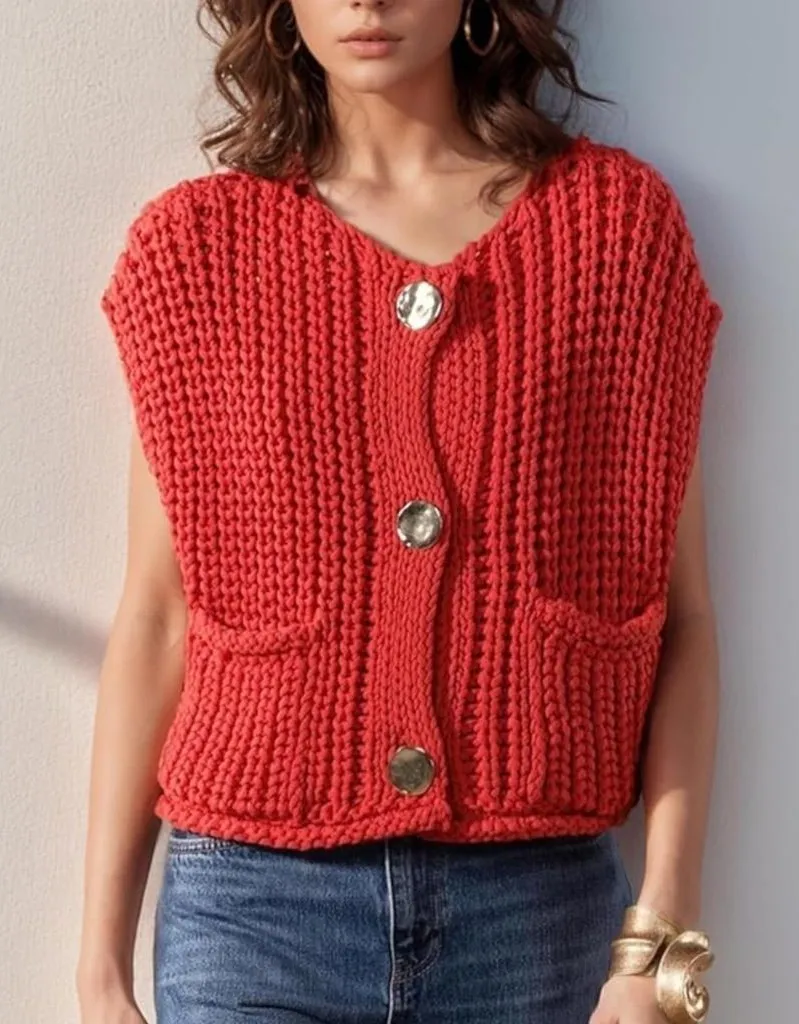 Knit Oversized Gold Button Sleeveless Vest Womens Large Red - $27 - From Hanna