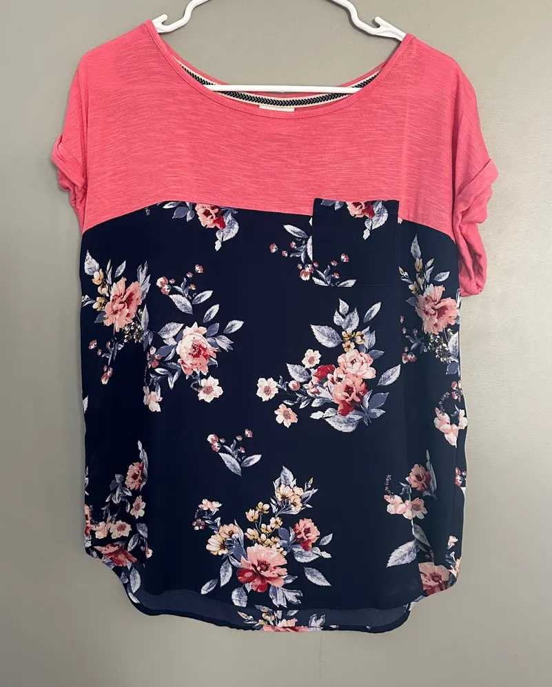 Floral Pink and Blue Women's Top - $13 - From Jillian