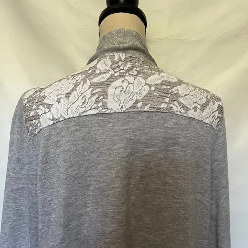 Gray Knox Rose Duster Open Front Cardigan With Lace Detail and Zip Cuffs Pockets on side, lace on ba... Show more