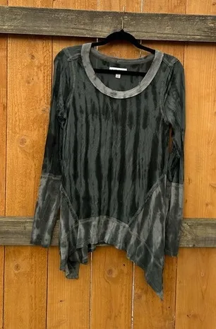 Knox rose green long sleeve tie dyed top size small. Preowned great condition. Has a shark bite hem,... Show more