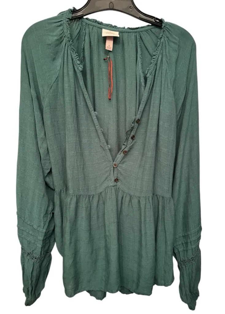 Knox Rose Peasant Green Rayon Boho Long Sleeve Top Women’s Large NWOT - $14 - From Shannon