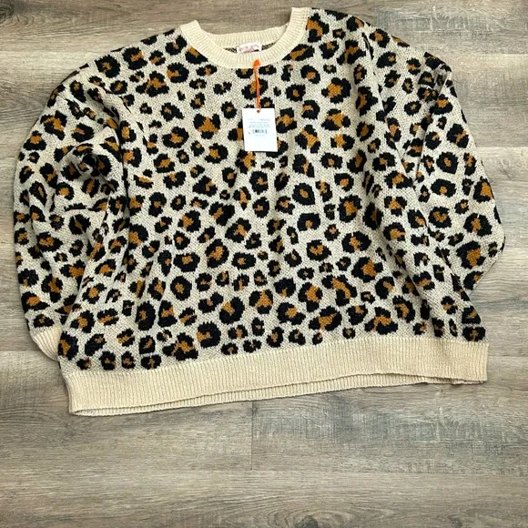 Knox Rose Woman’s Leopard Print Knit Sweater Crew Neck Stretch Knit Long Sleeve Tan Size 2X - $15 New With Tags - From Shopdevinetrend