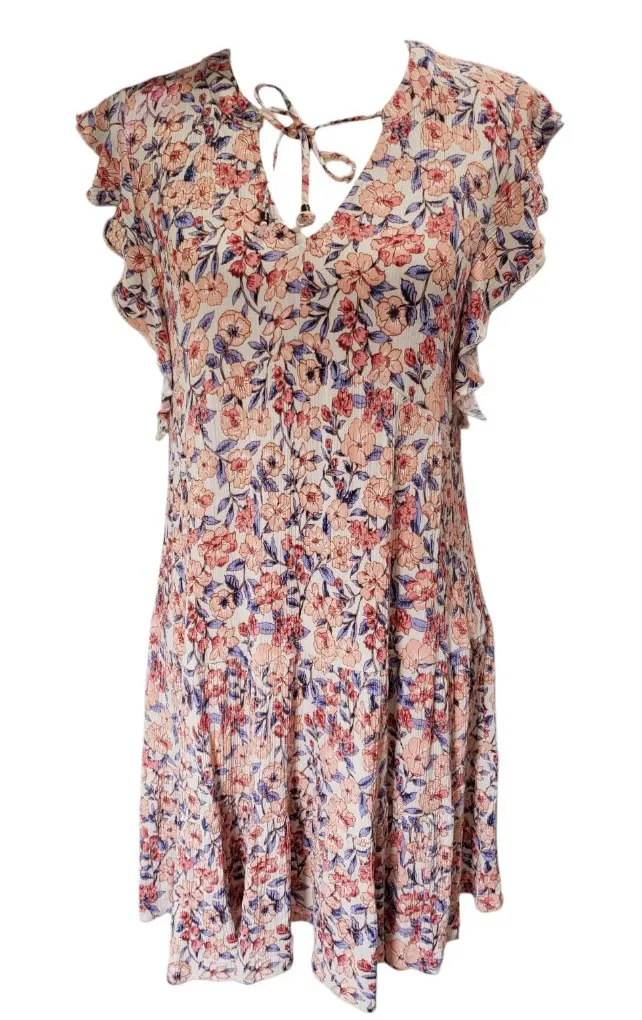 The Knox Rose Women's Ruffled Short Sleeve Floral Print Boho Knee Length Dress in Medium is a versat... Show more