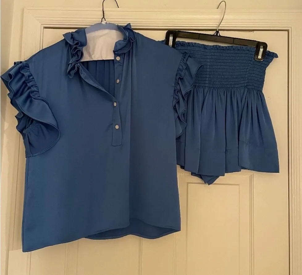 Koch Blue Ruffled Top and Skirt Set size small Blue - $300 - From Brittany