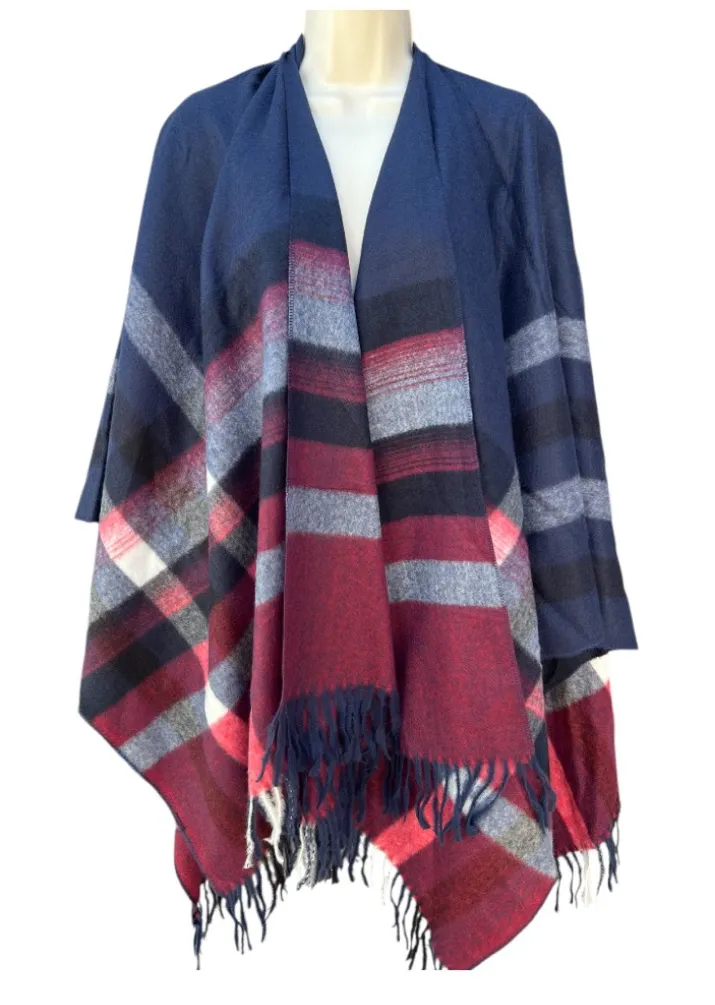 Brand: Kollie More Size: One Size Fits Most Material: Acrylic Color: Navy Blue/Red Plaid For: Relaxed, draped silhouette. Brand new in original packaging. Removed only to photograph. Soft and cozy shawl wrap. Great for fall layering!