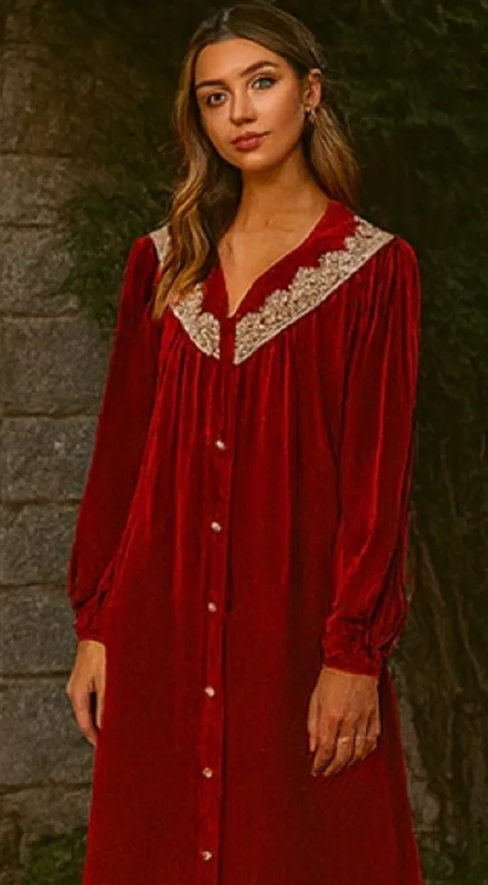 Komar Robe Red Womens Size 12/14 Front Button Long Sleeve V Neck Floral Lace Trim Previously owned, in very good condition. Please see the photos for more details Tagged size M but specifies 12/14, measured laid flat. Approximate measurements Underarm to Underarm Shoulder to Bottom hem Sleeve Length: Any questions please ask