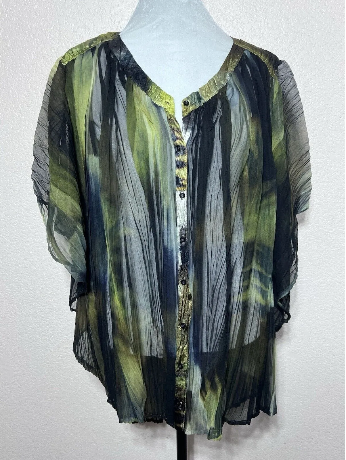 Komarov Top Blouse Women Small Abstract Print Crinkle Artsy Shirt Kimono Sleeves - $27 - From Luciana