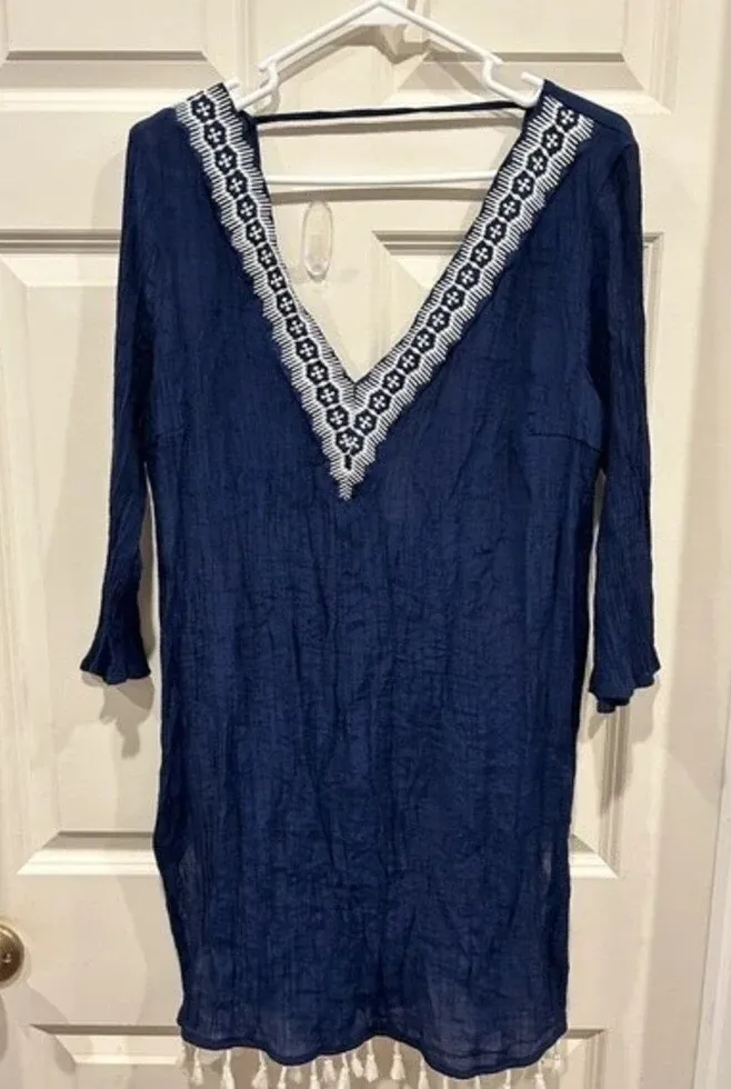 Kona‎ Sol Navy Tasel VNeck Swim Cover Up Size Large Blue - $25 - From Shayna
