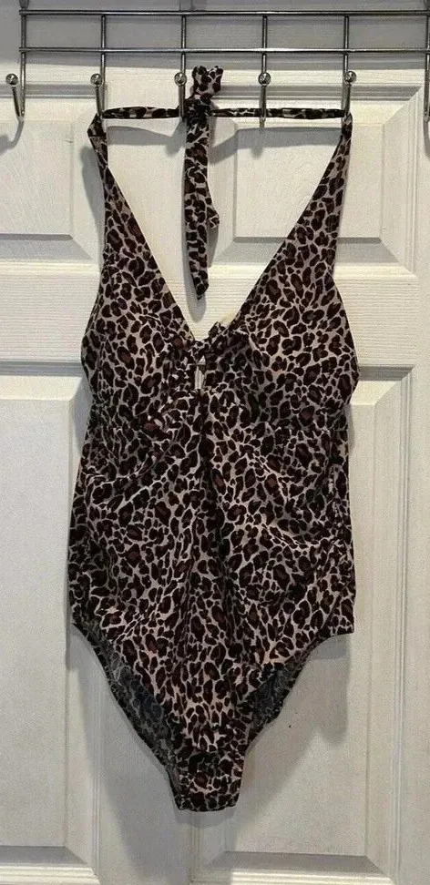 Kona Sol Leopard Spot‎ Animal Print Women's Twist-Front One Piece Swimsuit 16W Brown - $25 - From Shayna