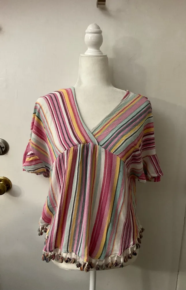 Kori America Fringed Multi-color Boho Top S Dopamine Costal Cowgirl Festival Pink - $18 - From Pamela