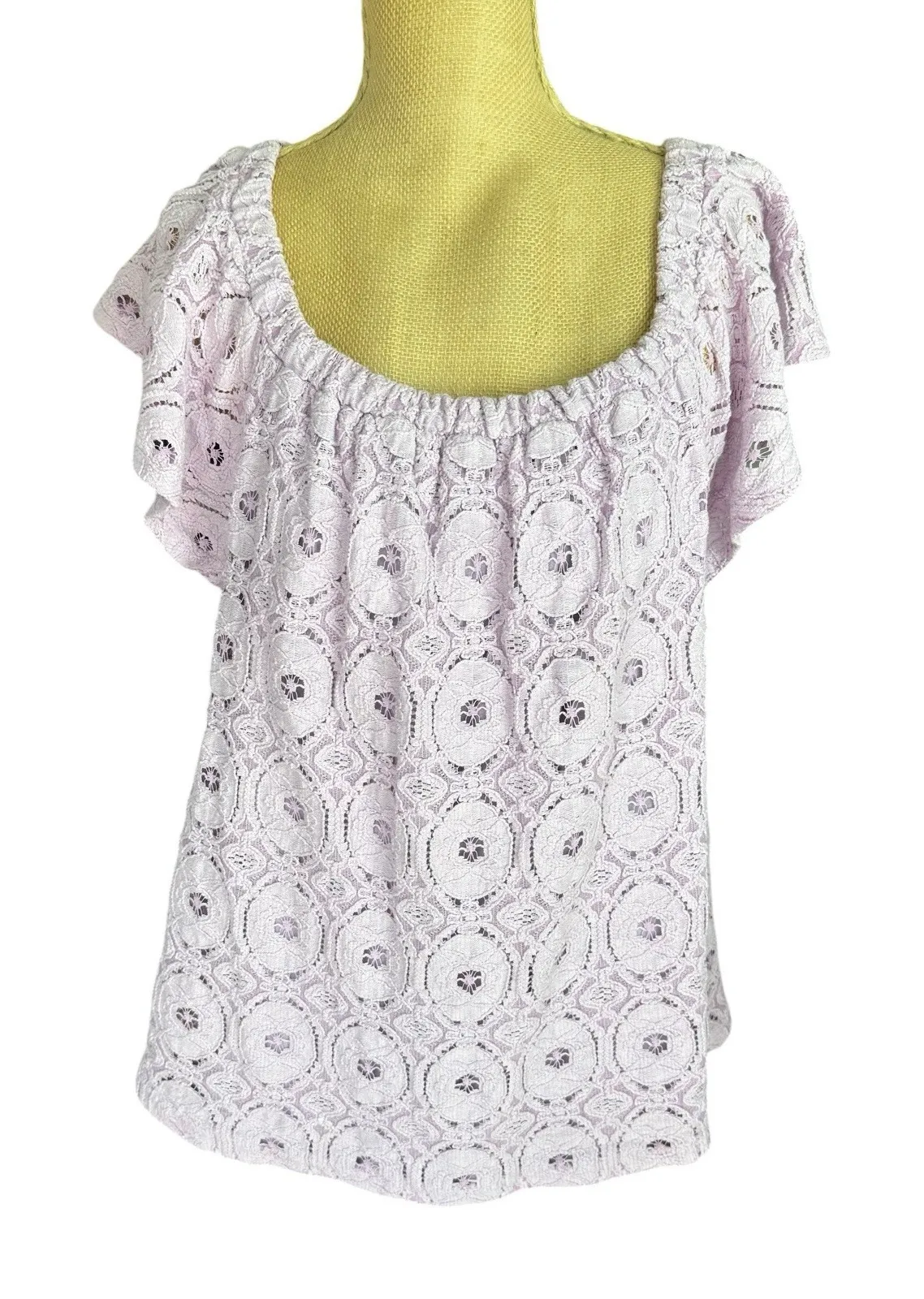 The Kori America Top Women Lilac Off the Shoulder Eyelet Blouse in size Medium is a stylish and vers... Show more