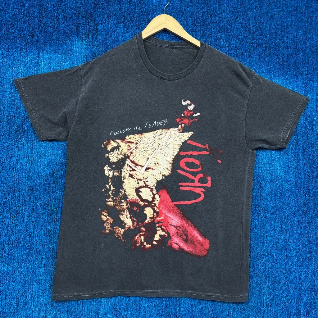 Korn Follow the Leader Nu Metal Band T-Shirt Size Large measures 22 inches pit to pit 27 inches long Amazing shirt perfect for fans of the legendary band Korn New overstock in great condition has distressing