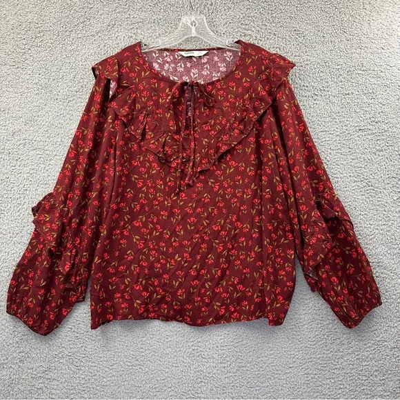 Pullover Tie front neck Ruffle detail on neckline and sleeves Elasticized sleeve ends Brand new wit... Show more