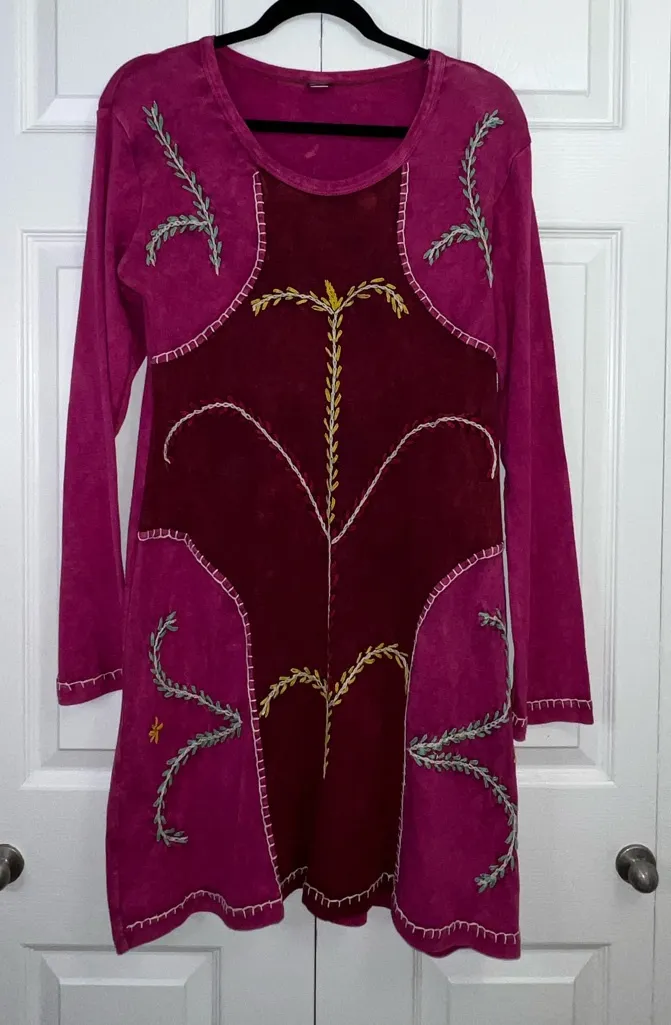 K.P.C. 100% Cotton handmade Boho Dress Large Y2K Pink Burgundy Embroidered Dress - $66 - From Araceli