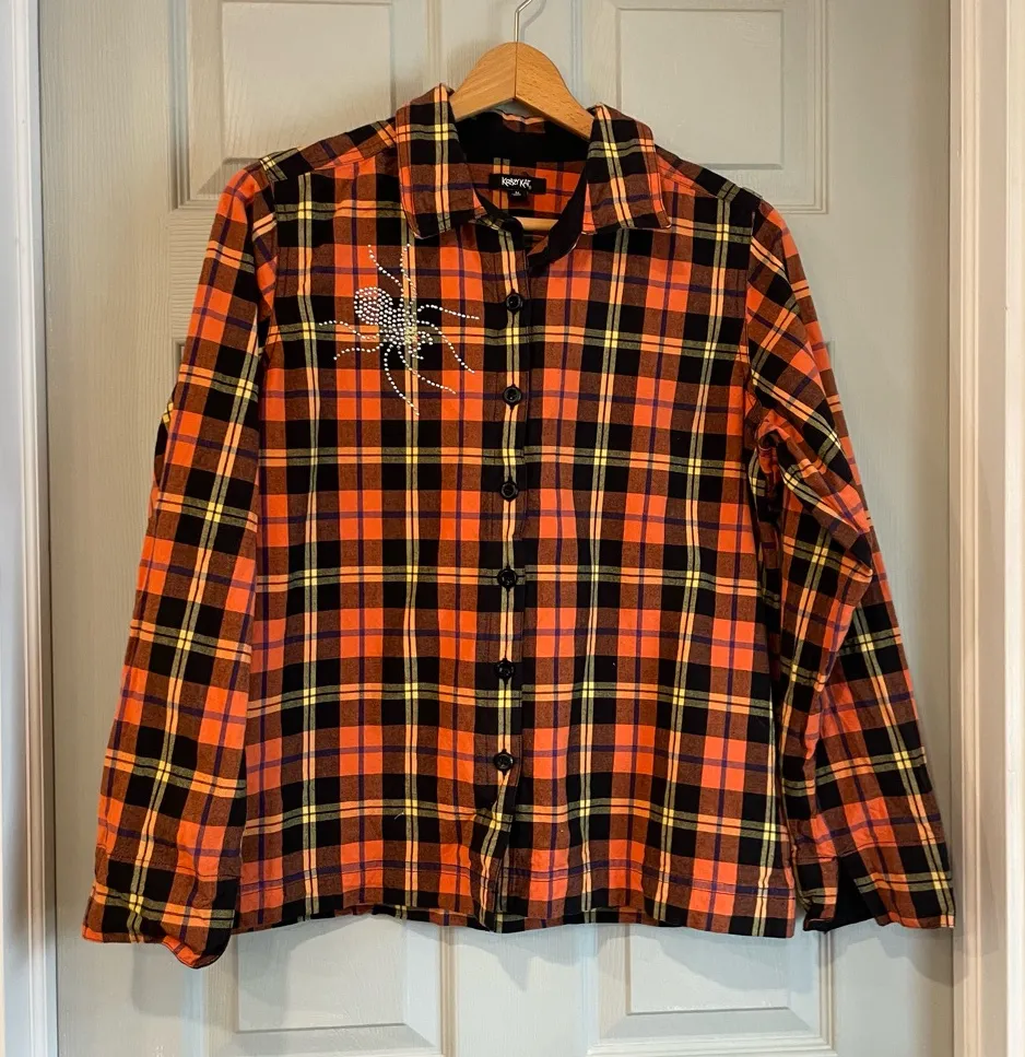 Krazy Kat Women's M Halloween Fall Spider Orange Black Plaid 100% Cotton Shirt Size M - $16 - From Camara