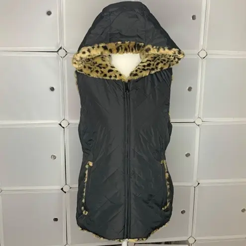 Kristen Blake Black & Leopard Faux Fur Reversible Hooded Vest Size Small - $45 - From The Swanky