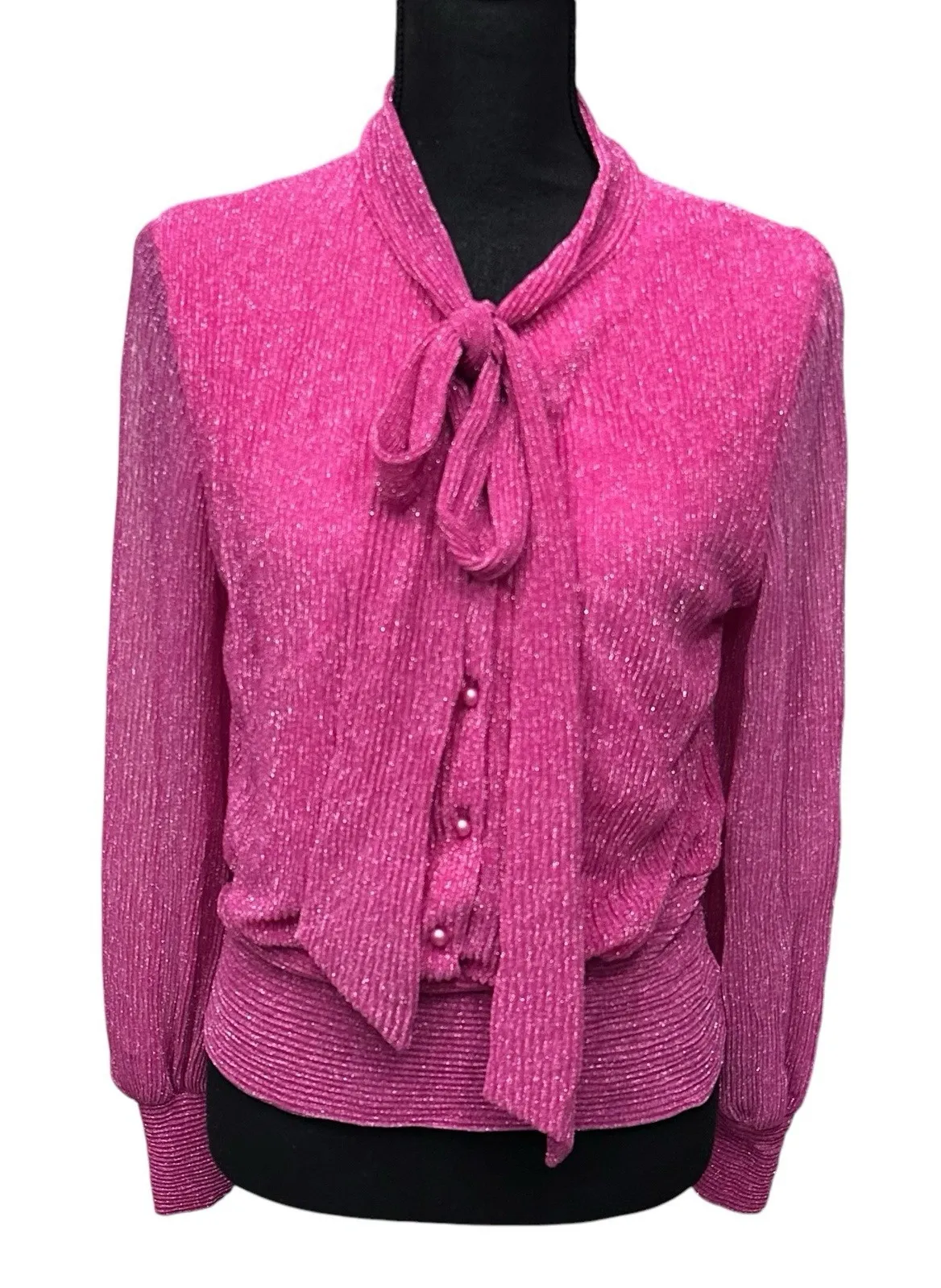 Kristinit Anthropologie Women's Size Medium Long Sleeve Fuchsia Blouse Top Tie Top is in good preow... Show more