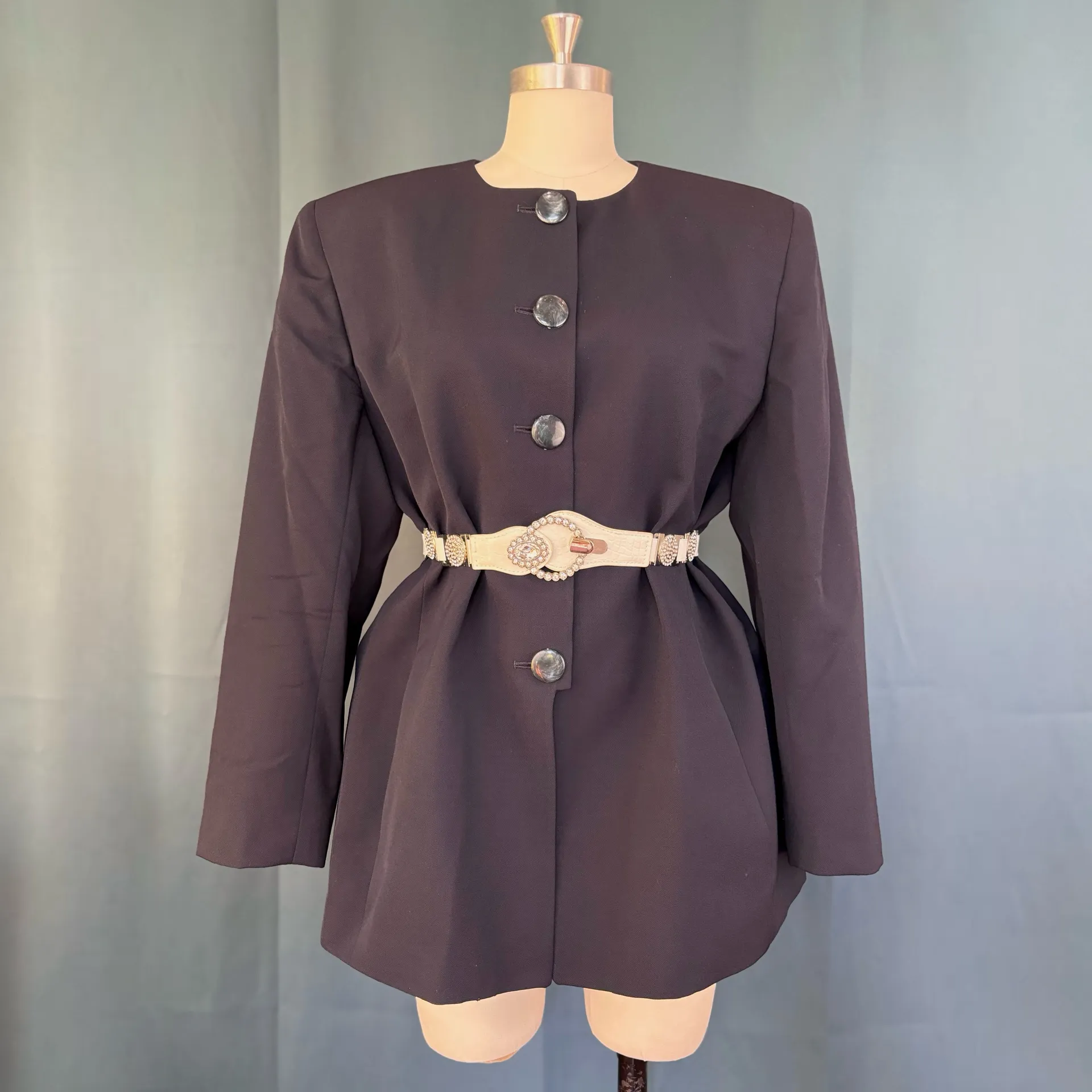 Vintage 80s Christian Dior Wool Long Line Suit Jacket Totally chic minimalist deep navy blue 1980s... Show more