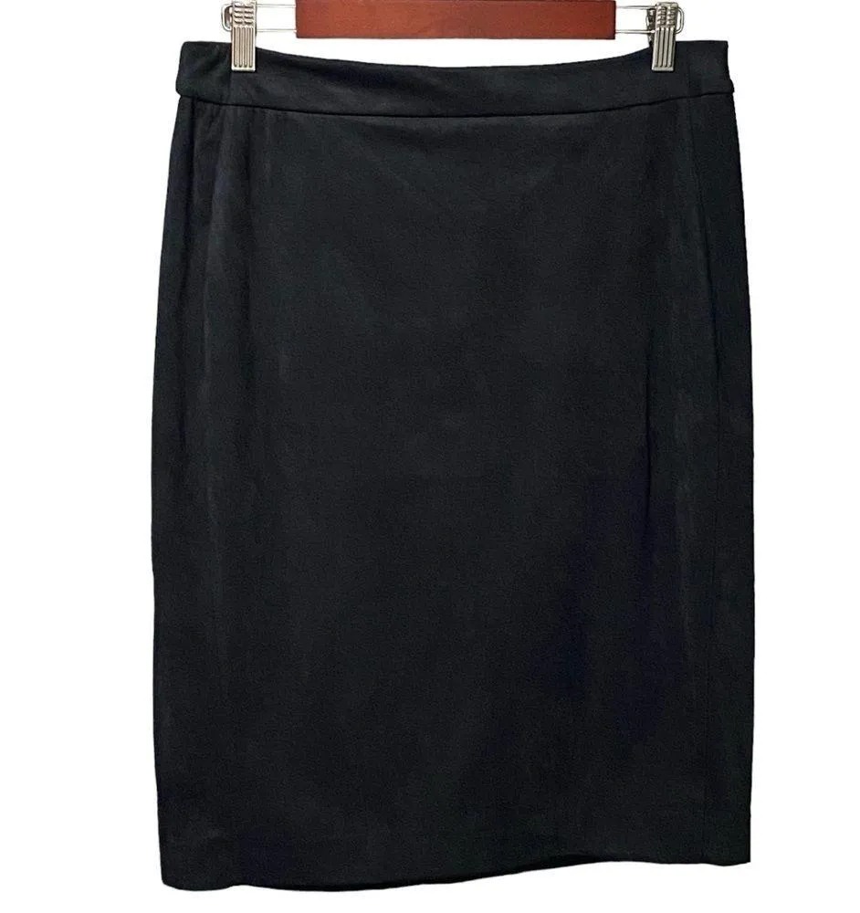 Excellent pre-owned condition, no flaws. Classic black vegan faux suede skirt from the Christian Siriano for J Jill collection. Features a sleek pencil silhouette, soft suede-like texture, and a versatile knee-length design. Perfect for work, events, or elevated casual looks. Measurements (laid flat): Waist: 16” Length: 23.5” Minimalist Wardrobe Staple Chic Capsule Closet Elevated Everyday Style Office To Evening Wear Classic Black Pencil Skirt Vegan Leather Alternative Modern Workwear Essential Fall Winter Wardrobe Luxury Designer Collaboration