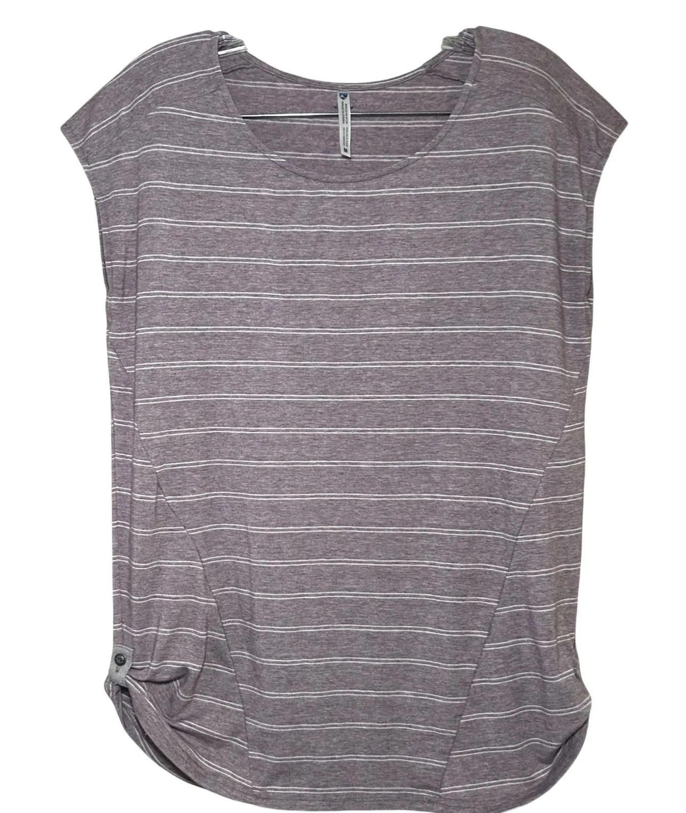 Purple and white striped short sleeve shirt Features: Stretch-blend melange fabric provides a super... Show more