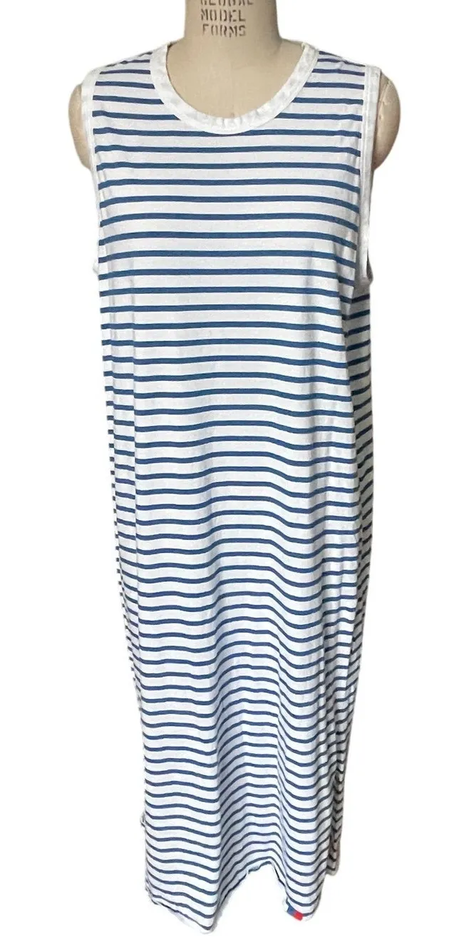 This sleeveless style is made of 100% Portuguese cotton that's light and airy. As for the fit, a straight boxy cut that's slightly snug across the chest for a bit of added femininity. The rest is loose-fitting throughout for comfort and ease. Excellent pre-owned condition Chest 23” Length 48” + Offers welcome! + Measurements are approximate, please review before purchase to ensure fit + Color may vary with device and lighting + Smoke-free and pet-free home basic luxury beach summer lightweight nautical seaside natural