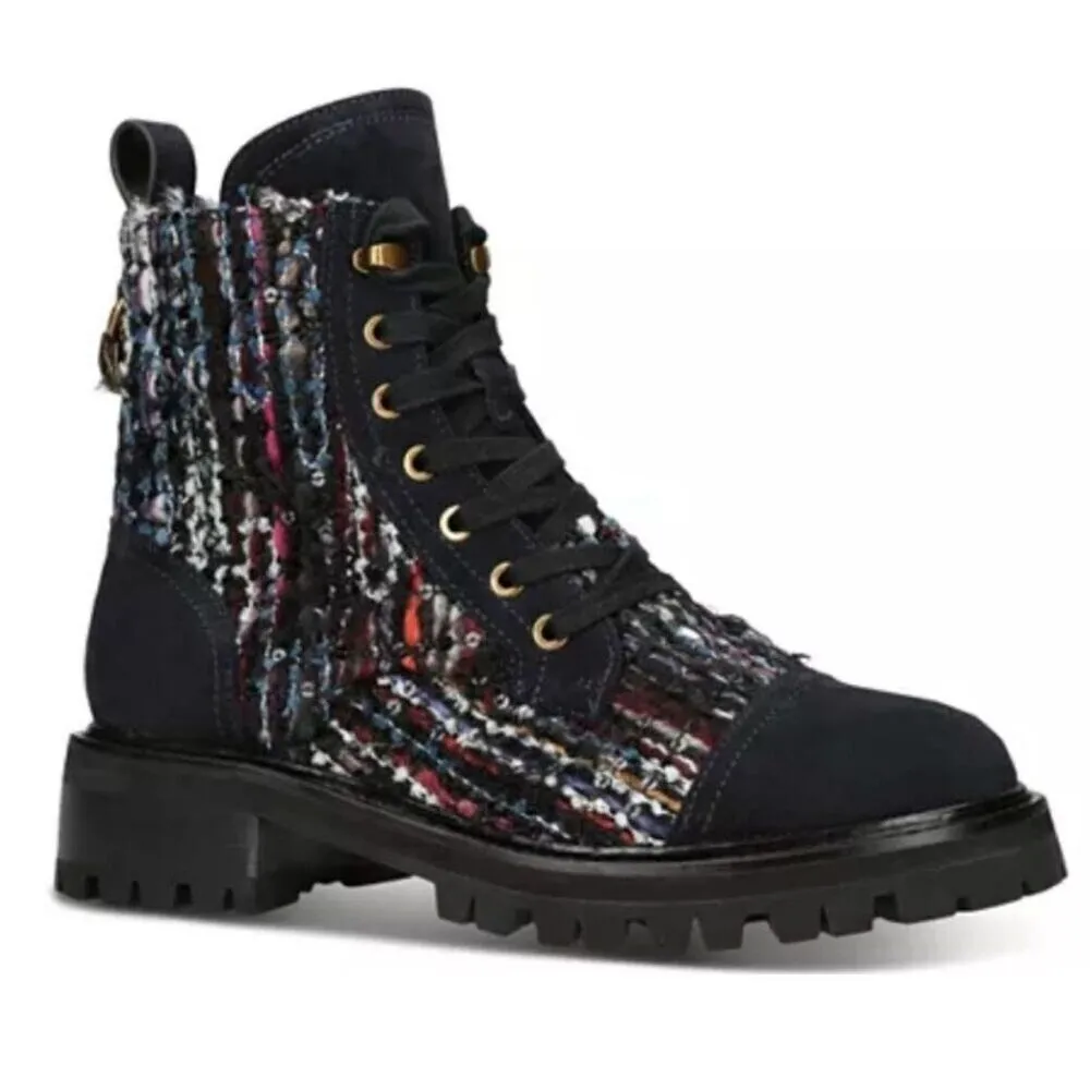 KURT GEIGER LONDON Women's Kensington Tweed Lace Up Combat Boots Sz 38/8 new no Black - $79 - From SheSaid