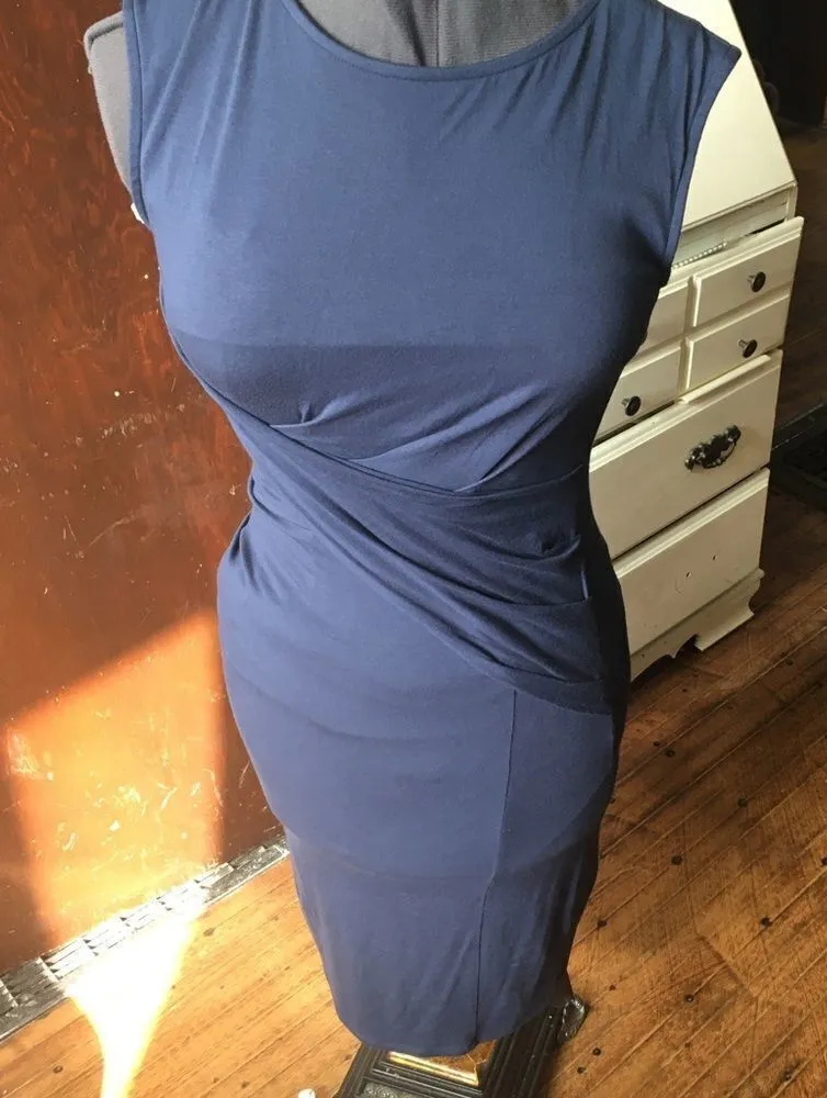 Kut from the Kloth navy, knit, business casual, minimalist, drape waist, slimming,’ pencil dress. Be... Show more