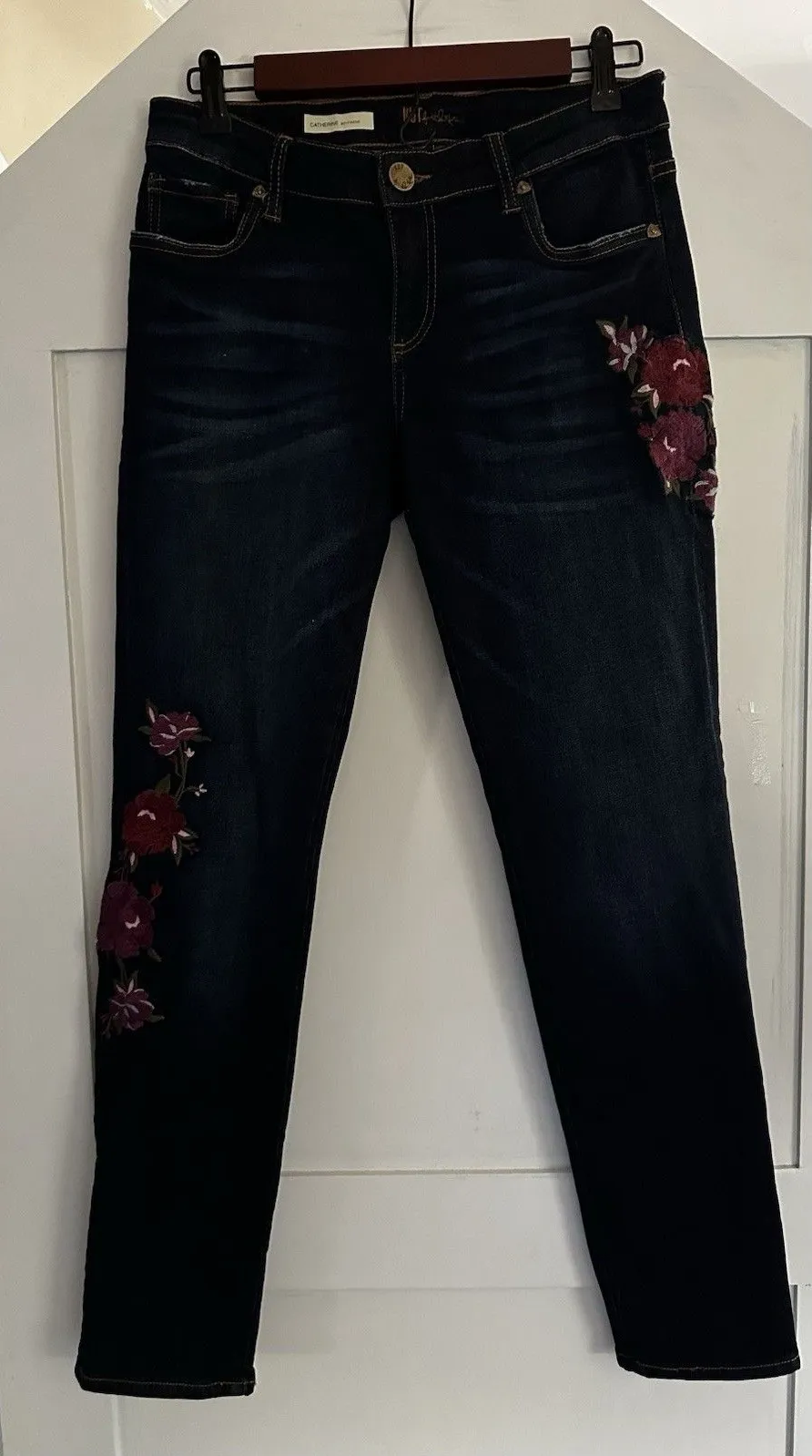 Kut From Kloth Boyfriend Jean Catherine Dark Wash Floral Embroidery Stretch Sz 2 Waist 30 Inseam 28