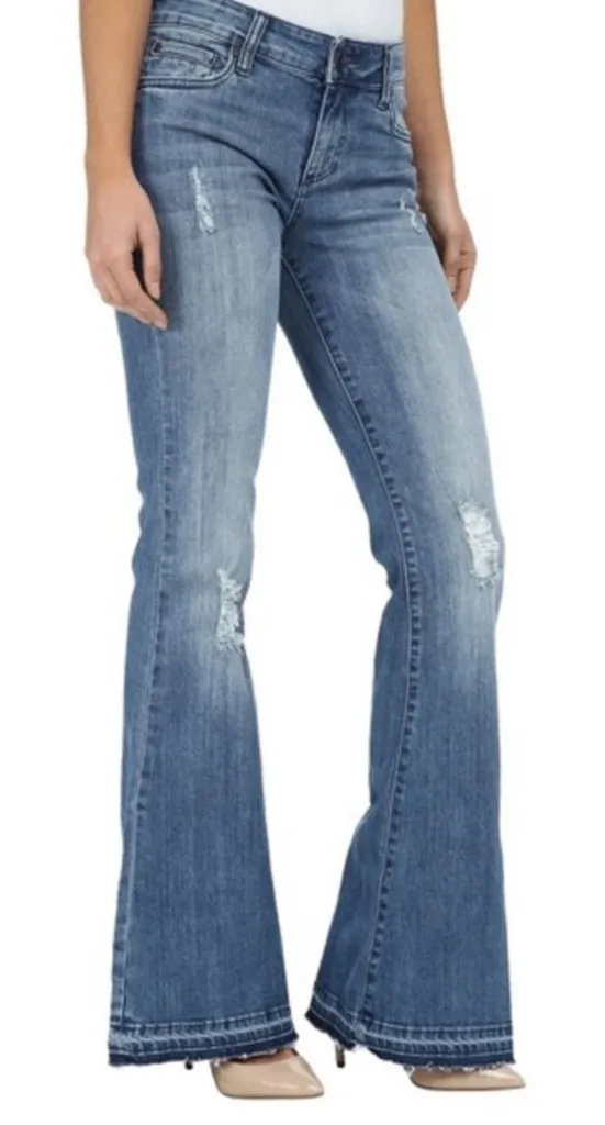 Kut from the Cloth Elena Super Flare Raw Hemmed Long Jeans sz 14 NWT