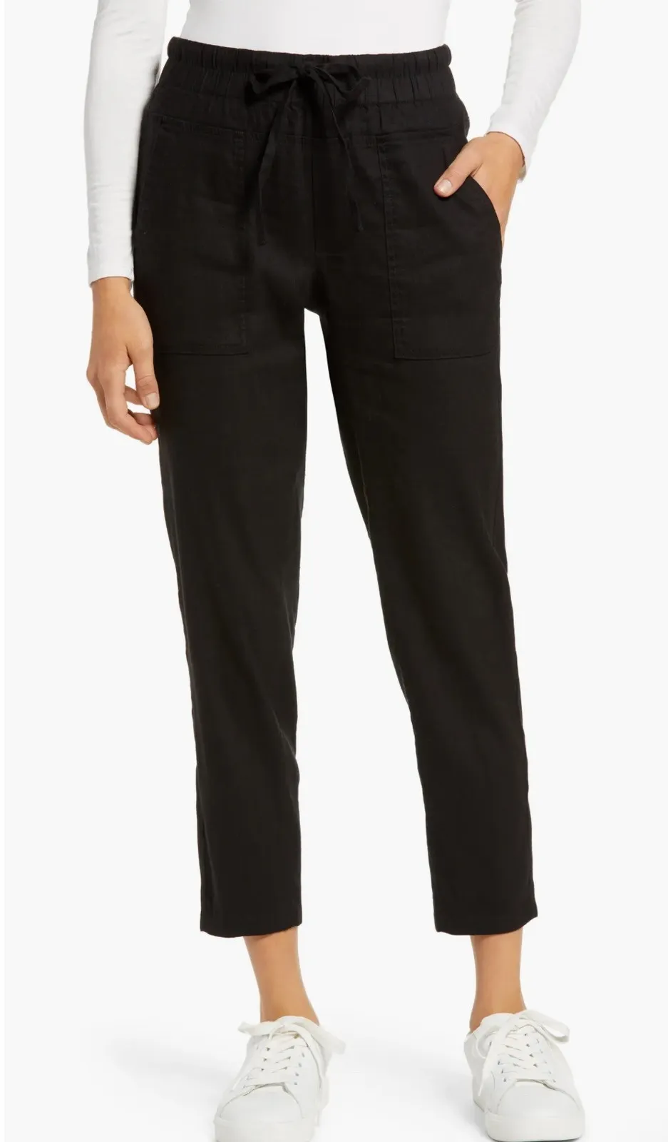 Kut From The Kloth black linen blend utility pants. These pants feature a comfortable drawstring wai... Show more