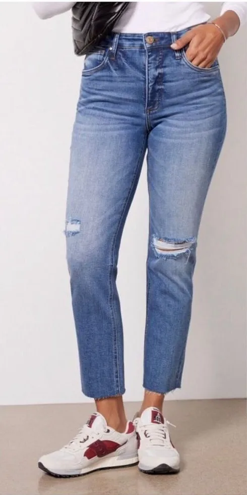 Kut From the Kloth Rachael Fab Ab Straight Leg Mom Jean in Dark Stonewash. Crafted in soft stretch d... Show more