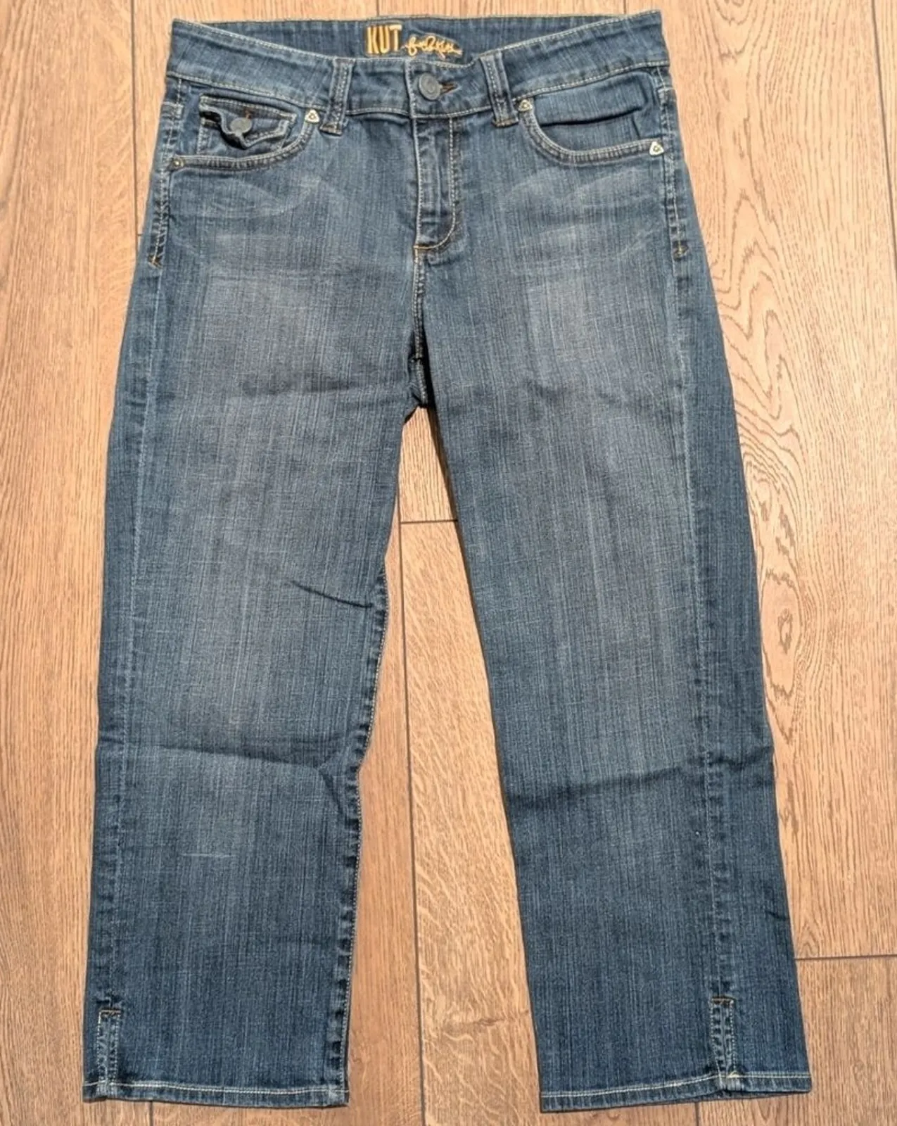 Great condition! Kut From The Kloth light wash denim Capri jeans in women's size 6! Embroidered, bu... Show more