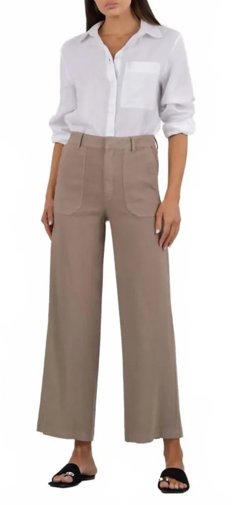 KUT Tan Linen Cotton Topaz Wide Leg Crop Pants Size 12. In good, gently used condition. Minor wear... Show more