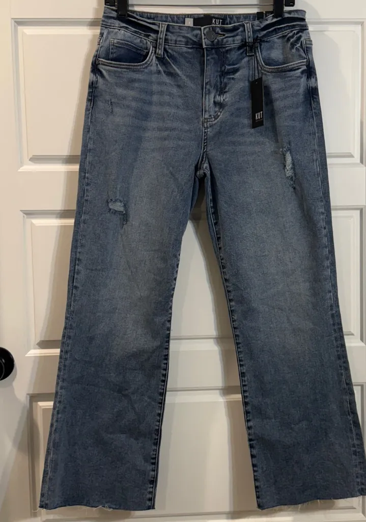 NWT KUT High Rise Kelsey Ankle Flare Women's Distressed Blue Jeans 8 - $78 New With Tags - From Tracy