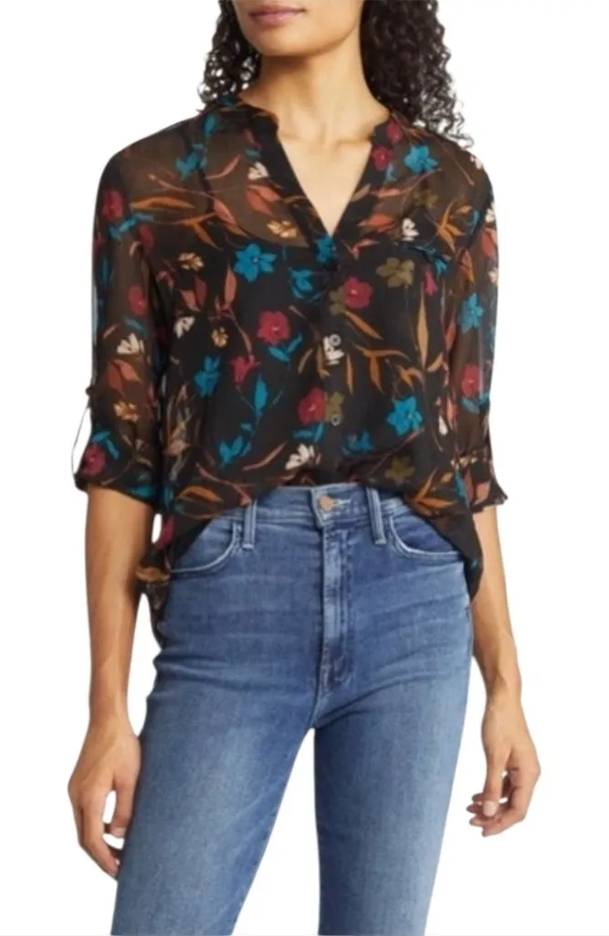 Elevate your style with this chic floral sheer top. Featuring a vibrant multicolor design, it's perf... Show more