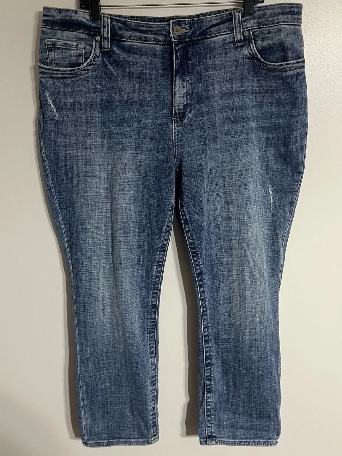 Waist measures 20" laying flat Rise 12" Inseam measures 27" Excellent pre owned condition, no holes... Show more