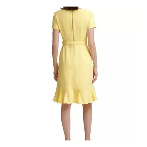 The Calvin Klein Size 8 Short Sleeve Belted Ruffle Hem Wrap Mid Length Dress in black is a sophistic... Show more