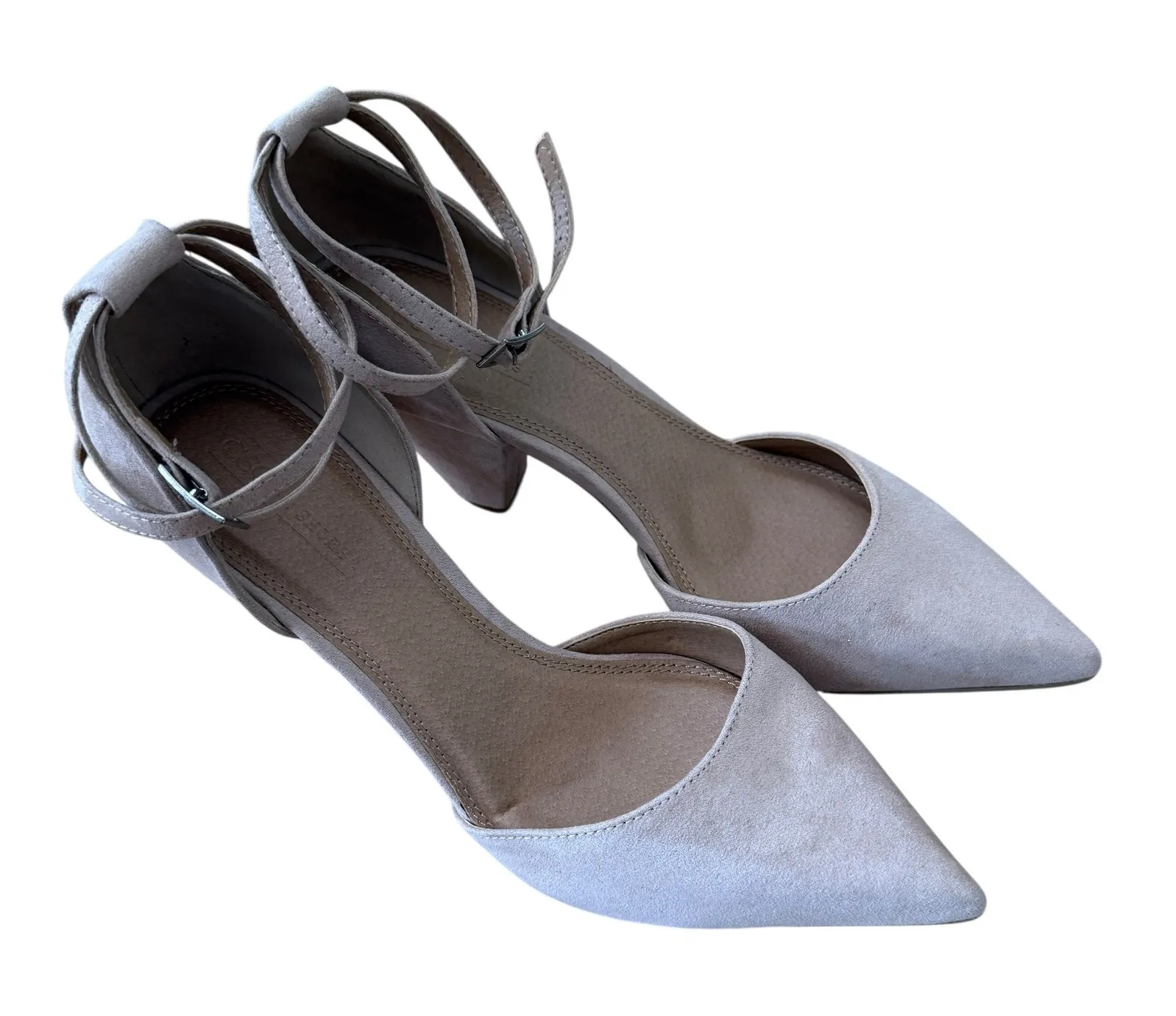 Elegant silhouette begins with these beige heels. These beauties showcase a stylish pointed toe and a chic ankle strap design for a secure and flattering fit. The block heel adds a touch of sophistication while ensuring comfortable wear. These heels are the perfect finishing touch for a cocktail party, a wedding reception, or a special date night. Style: Strappy Department: Women Upper Material: Faux Suede Heel Style: Block Type: Heel Toe Shape: Pointed Toe Heel Height: Mid (2-2.9 in) Pattern: Solid Closure: Buckle Features: Adjustable Strap, Straps Keywords: ASOS Design, Beige Heels, Pointed Toe, Ankle Strap Heels, Block Heel, Womens Heels, Faux Suede Heels, Size 7.5, Party Heels, Wedding Heels, Date Night Heels, Neutral Shoes, ASOS Heels, Dressy Heels