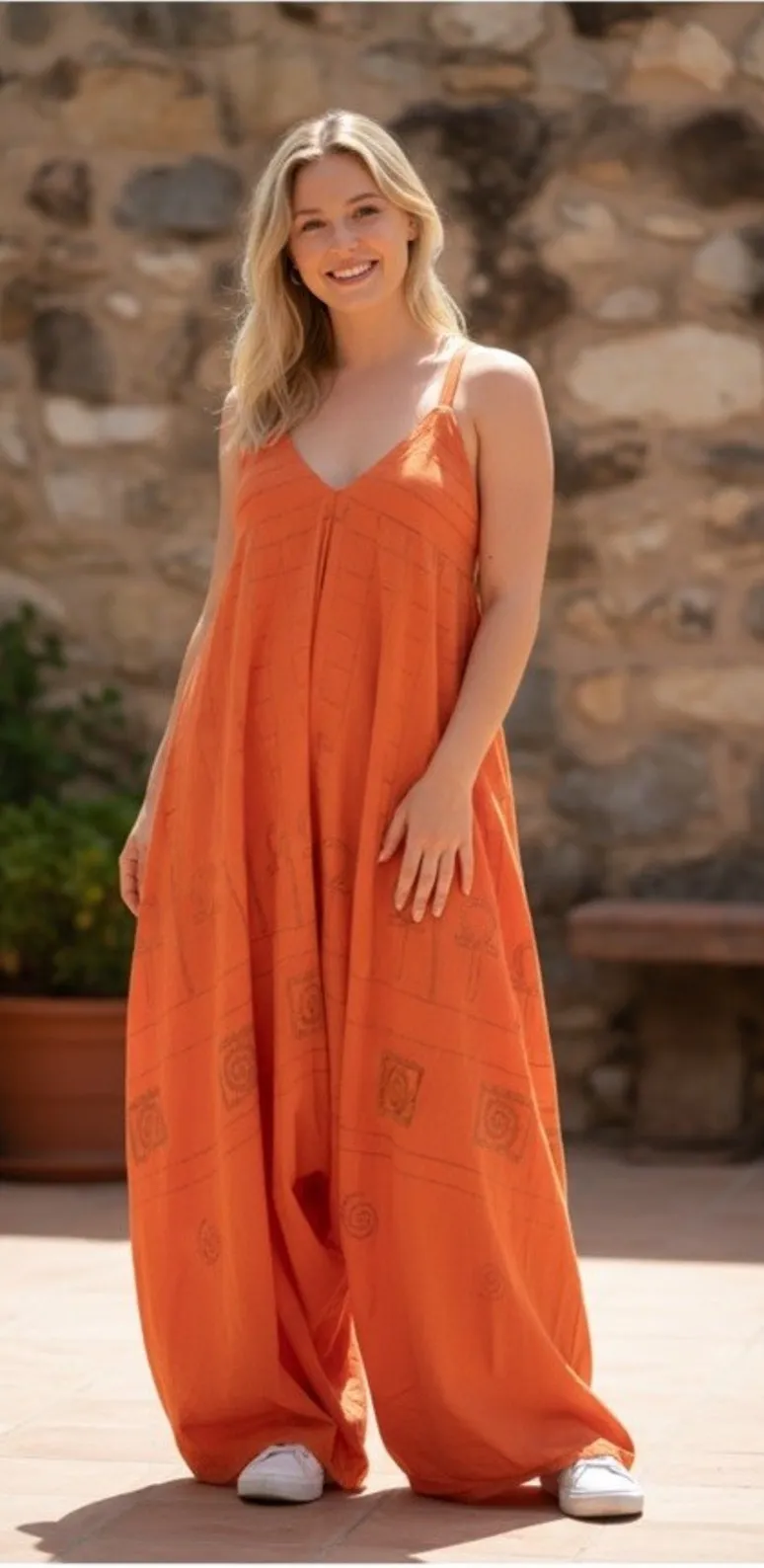 L’ Antonio Orange Aztec Art To Wear Baggy Oversized Harem Jumpsuit. Very oversized and baggy with an... Show more