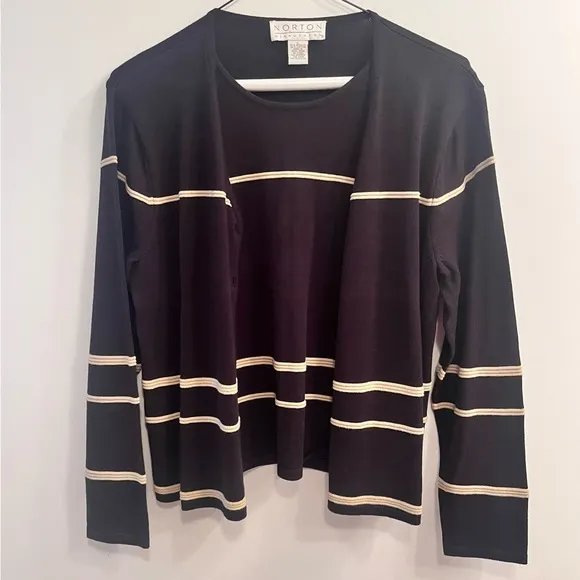 Norton McNaughton back and cream two in one sweater set with ability to button or leave open the fro... Show more