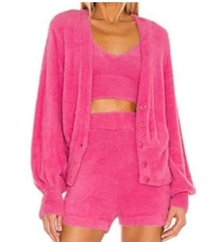 L Space Womens Size XL Daydreamin Button Front Cardigan Barbie Bubblegum Pink Knit Cozy Fuzzy NWT Bl... Show more