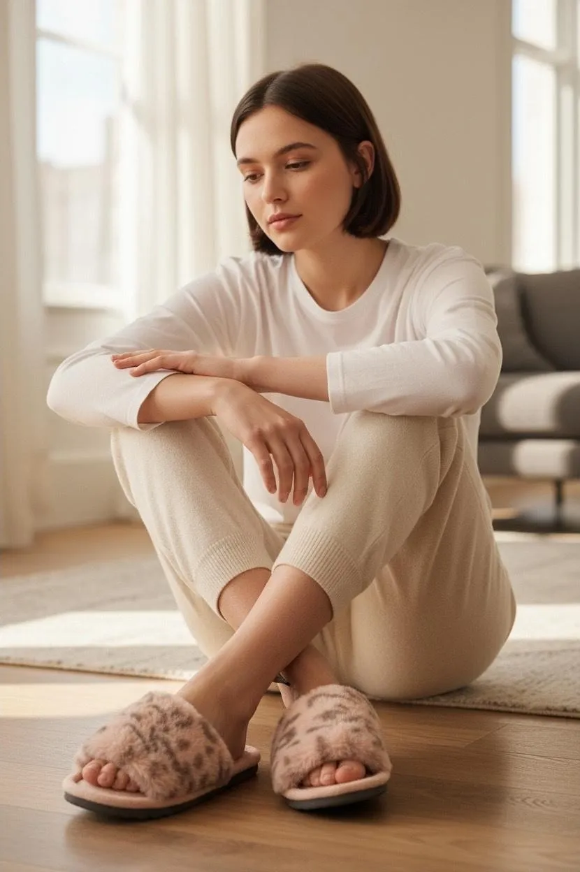 NWT ISOTONER Pink Cheetah Evening Fuzzy Slip On Sandals Size SM 6.5-7 Soft and cozy. Supple faux fu... Show more