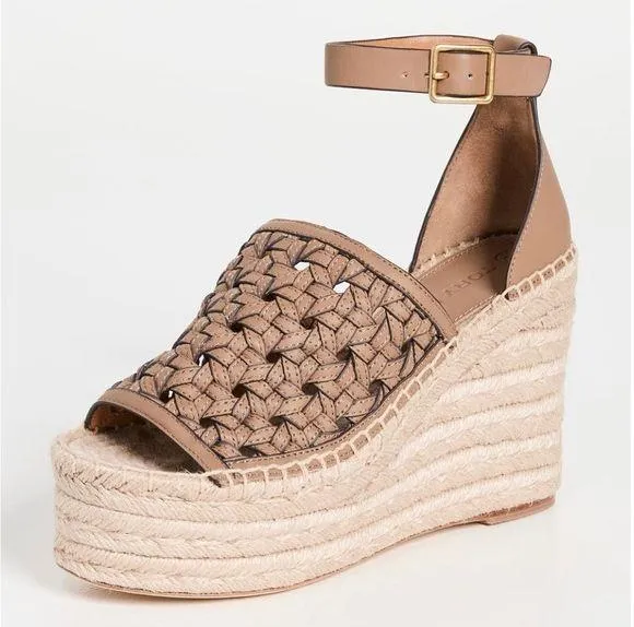 Tory Burch Basketweave Espadrille Wedges, Smooth Vachetta Leather, Almond Flour Size 10M Summery an... Show more
