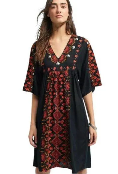 Raga By Anthropologie Rala Bohemian Tunic Dress Small Black Embroidered Boxy Boho Hippie New with t... Show more