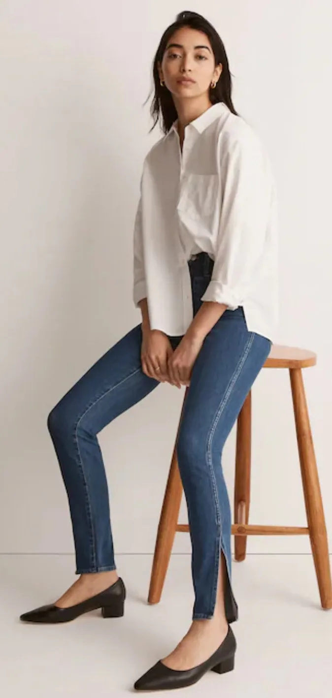 Madewell 11" High-Rise Roadtripper Supersoft Skinny Jeans in Medium Indigo Wash: Slit-Hem Edition M... Show more
