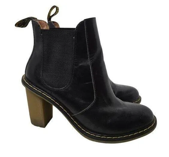Gently used, size 7 Dr. Martens Eloise Chelsea Boot heel bootie black leather goth sz 9