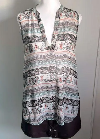 Excellent preloved condition - No Boundaries Women’s Boho Paisley Print Sleeveless Tunic Overlay Top... Show more