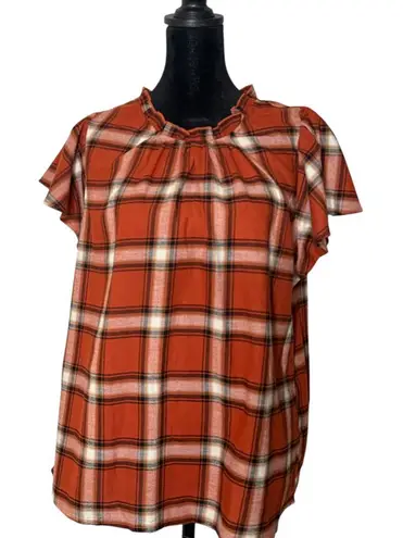 Womens Rust Orange‎ Plaid Top Size S Time & Tru Ruffle Sleeve Checkered Cottage Orange - $17 - From Raynika