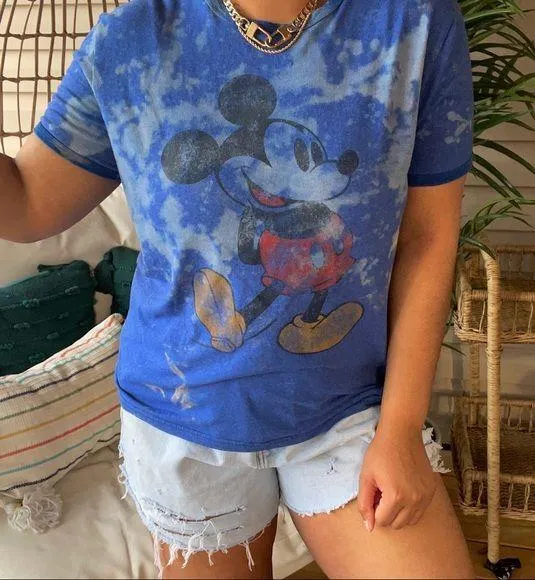 Disney Mickey Mouse Custom One Of A Kind Reverse Dyed Bleach Washed Graphic Tee SZ M The size tag is... Show more